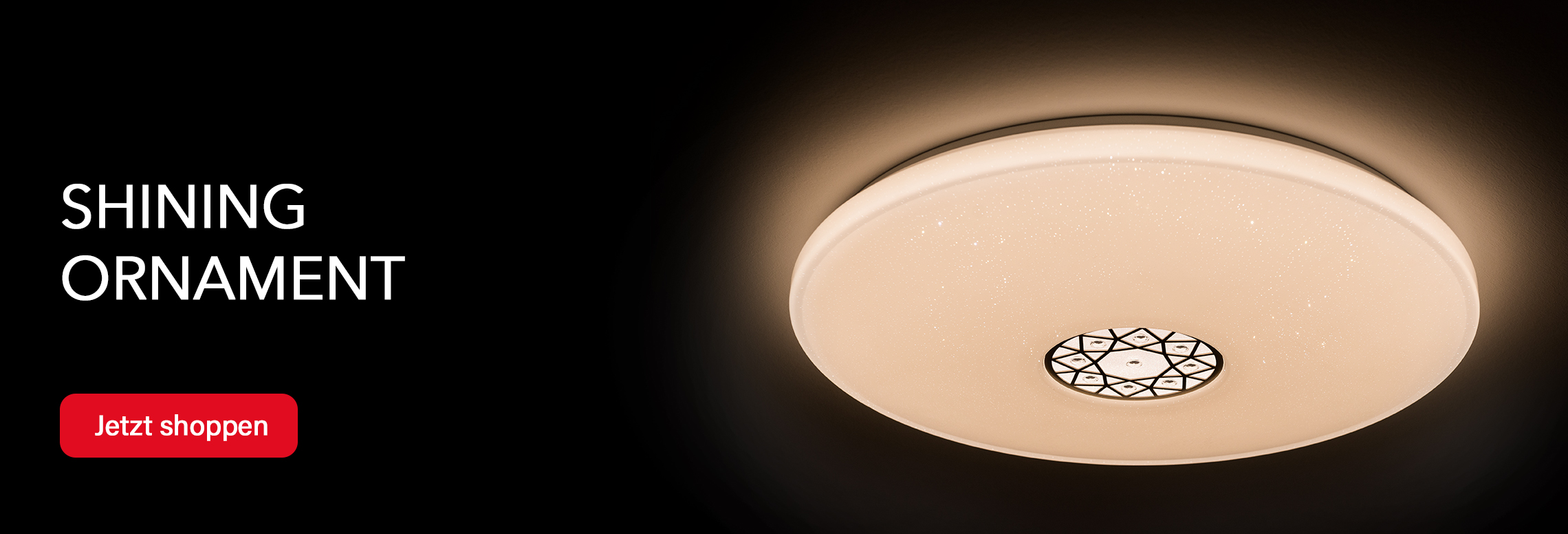Das Design der Shining Ornament erinnert an die Magie des Orients. Der runde Diffusor aus hochwertigem Kunststoff ist mit detailverliebten Glitzerelementen versehen und bildet das Herzstück dieser außergewöhnlichen Leuchte. Das zentrale Designelement, das an einen Traumfänger und ein Mandala erinnert, verleiht der "Shining Ornament" eine mystische Ausstrahlung.